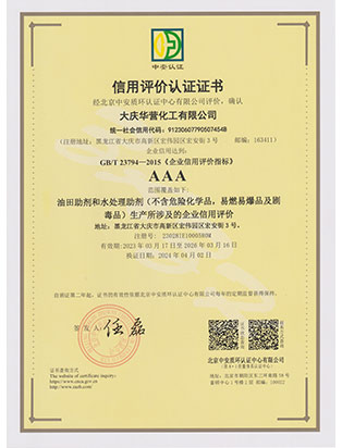 大慶華營化工有限公司成立于2006年7月10日,注冊資金3300萬元,公司類型為有限責任公司。位于大慶高新技術產(chǎn)業(yè)開發(fā)區(qū)宏偉園區(qū),是一家集油田助劑產(chǎn)品的研發(fā)、生產(chǎn)、銷售和技術服務為一體的現(xiàn)代化高新技術企業(yè)。公司注重科技創(chuàng)新,公司擁有18項自主知識產(chǎn)權。企業(yè)承擔過國家火炬計劃重點項目、國家科技型中小企業(yè)創(chuàng)新項目等,2011年被科技部火炬高新技術產(chǎn)業(yè)開發(fā)中心評為國家火炬計劃重點高新技術企業(yè)。公司十余種產(chǎn)品獲得中國石油天然氣集團公司產(chǎn)品質量認可證書,其中粘穩(wěn)型驅油劑獲國家火炬計劃重點項目證書。公司憑借多年對大慶油田及周邊油田地質情況的研究,可針對各油田地層特點調整產(chǎn)品的配方,更好地發(fā)揮各類油田助劑的性能。